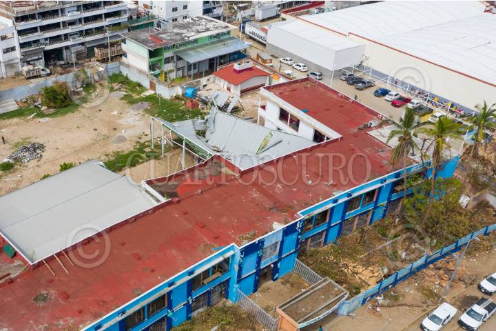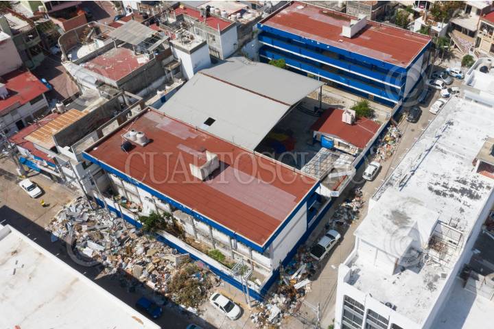 ACAPULCO, GUERRERO, 07NOVIEMBRE2023.- Toma aérea de la escuela primaria Ignacio Manuel Altamirano en las inmediaciones del Zócalo de Acapulco. FOTO: GALO CAÑAS/CUARTOSCURO.COM