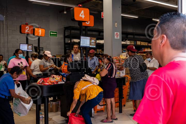 ACAPULCO, GUERRERO, 07NOVIEMBRE2023.- Con vigilancia de la Guardia Nacional, algunas tiendas de autoservicio han comenzado a vender insumos de la canasta básica luego de la ola de saqueos en el puerto tras el impacto del Huracán Otis. Las y los acapulqueños hacen largas filas de horas para adquirir productos. FOTO: GALO CAÑAS/CUARTOSCURO.COM