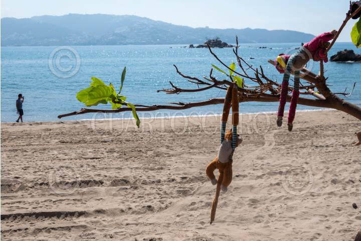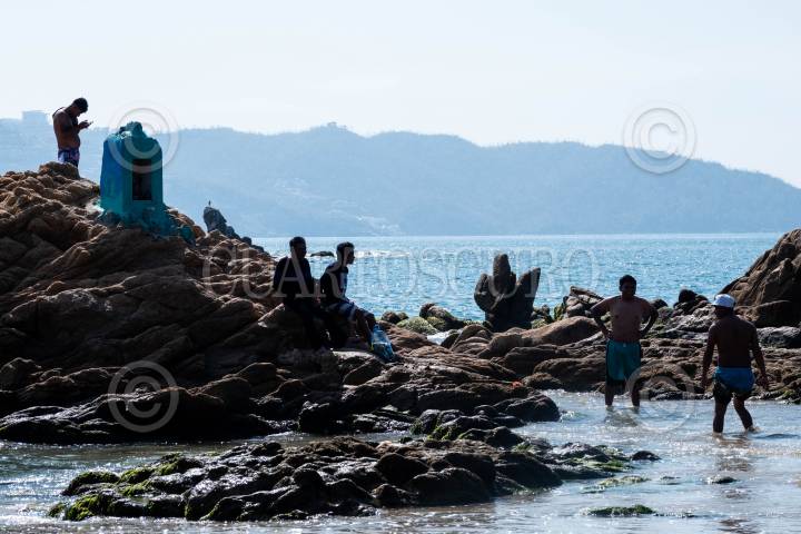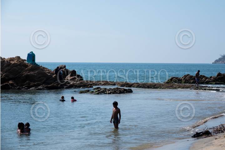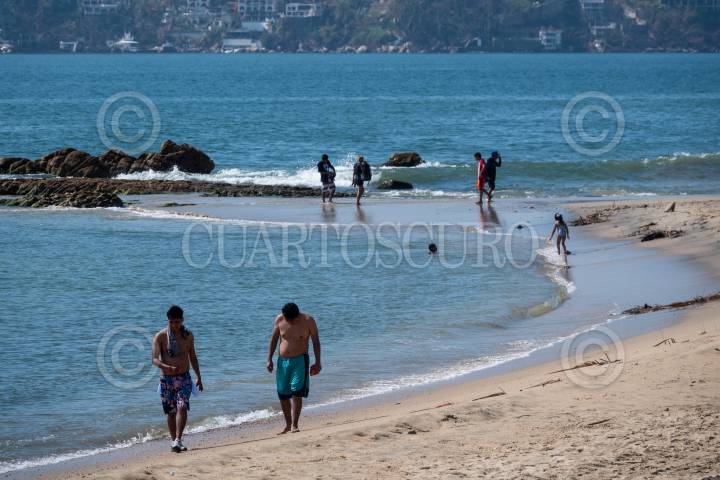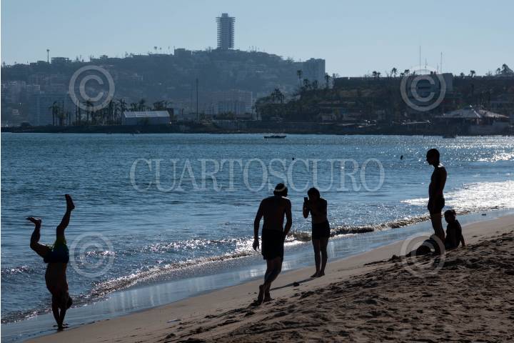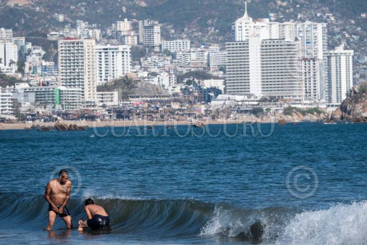 ACAPULCO, GUERRERO, 08NOVIEMBRE2023.- A dos semanas del impacto del huracán Otis en Acapulco, pobladores han regresado a las playas del puerto para refrescarse por breves momentos. A su vez, trabajadores de las palapas y restaurantes comienzan con la reparación de los locales para empezar a operar lo antes posible. FOTO: GALO CAÑAS/CUARTOSCURO.COM
