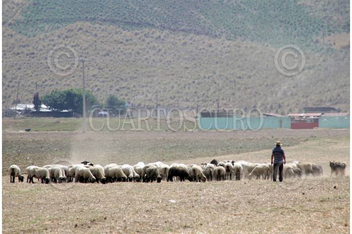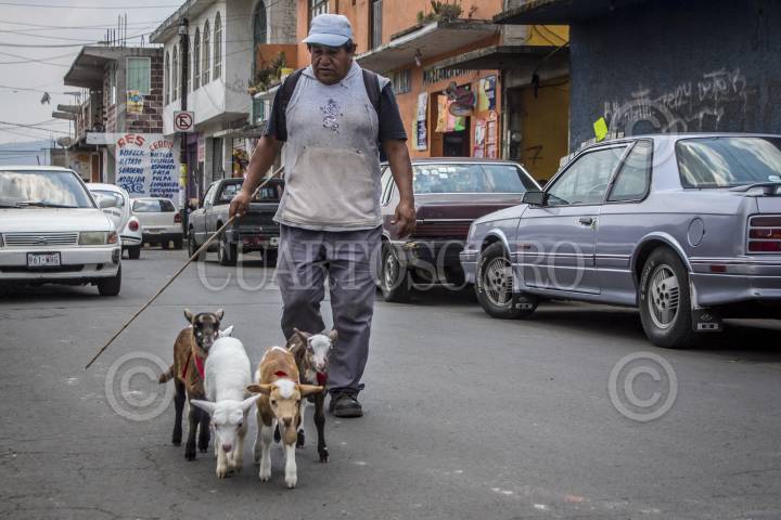 MÉXICO, D.F., 10MAYO2014.- Un señor camina por la calle guiando con una vara a un pequeño rebaño de ovejas hacia el mercado para venderlas, en la delegación Milpa Alta. FOTO: DAVID POLO /CUARTOSCURO.COM