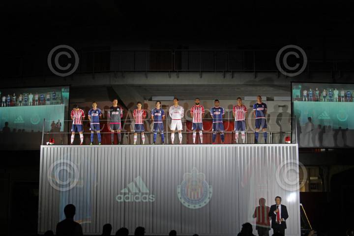 ZAPOPAN, JALISCO, 20JULIO2015.-Esta noche en las instalaciones del Estadio Omnilife Jorge Vergara dueño del equipo de las Chivas del Guadalajara encabezo la presentación del nuevo Jersey del equipo del Rebaño. FOTO: FERNANDO CARRANZA GARCIA / CUARTOSCURO.COM