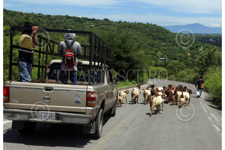 COATETELCO, MORELOS, 20JUNIO2018.- Un pastor guia su rebaño de chivos en una carretera que conduce a este recien creado municipio indigena. FOTO: MARGARITO PÉREZ RETANA /CUARTOSCURO.COM