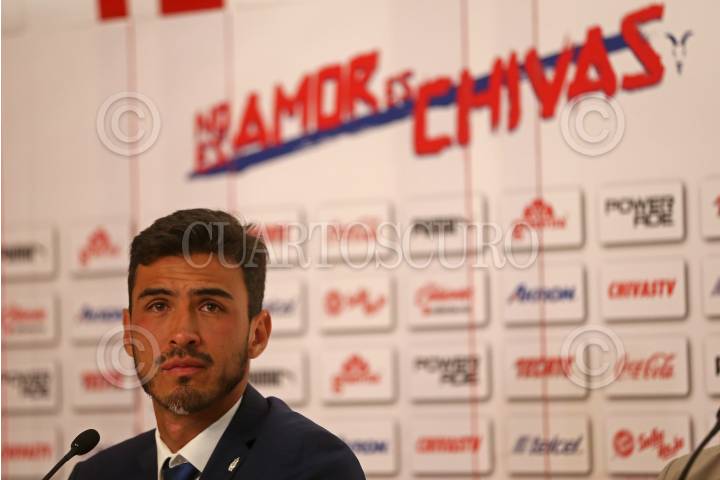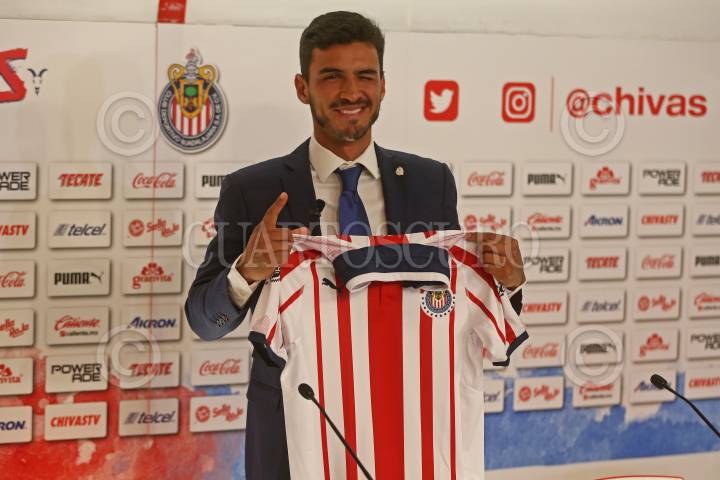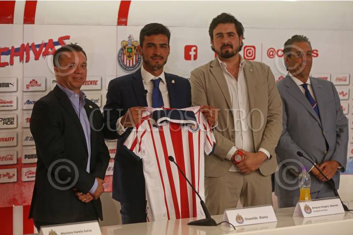 ZAPOPAN, JALISCO, 25JUNIO2019.- Amaury Vergara Presidente del Club Chivas de Guadalajara, Tomás Boy Director Técnico y Mariano Varela Director Deportivo del Club, encabezaron la presentación de Oswaldo Alanís como refuerzo del rebaño, esto en el Estadio Akron. FOTO FERNANDO CARRANZA GARCIA / CUARTOSCURO.COM