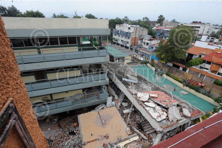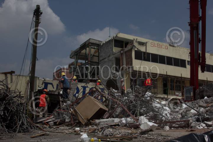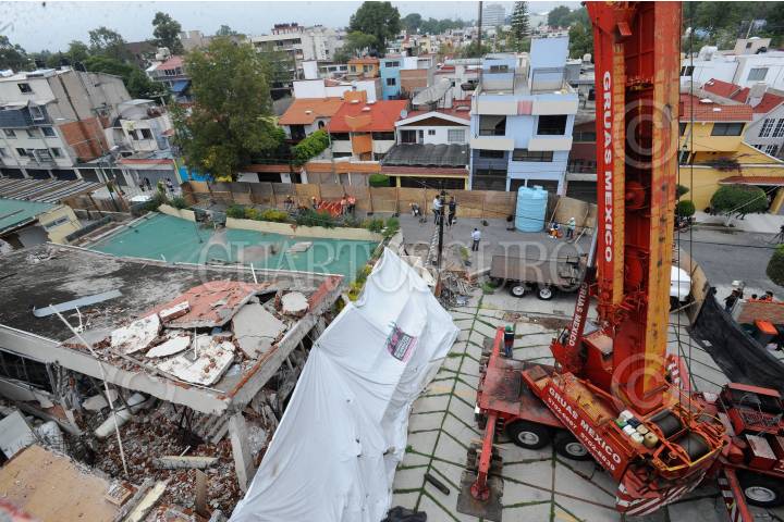 CIUDAD DE MÉXICO, 25SEPTIEMBRE2018.- Continúan los trabajos de demolición del colegio Enrique Rebsamen, en la delegación Tlalpan, el cual colapsó el pasado 19 de septiembre de 2017 causando la muerte de 19 infantes. El día de ayer, Mónica García Villegas, ex directora del colegio, ofreció entrevista a medios donde señaló que la enjuiciaron sin oportunidad de defenderse. FOTO: GALO CAÑAS /CUARTOSCURO.COM