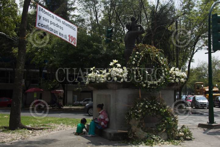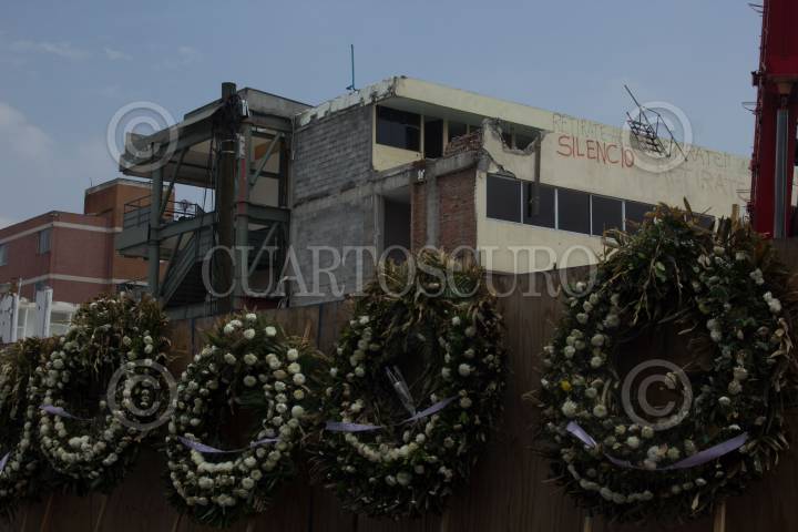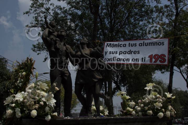 CIUDAD DE MÉXICO, 15MAYO2018.- En las afueras del Colegio Enrique Rebsamen, donde murieron niños y profesores, se encuentra abandonado desde hace meses. Este día del maestro acudieron familiares de los fallecidos, algunos profesores y medios de comunicación también dos aspirantes al gibierno de la Ciudad, Purificación Carpinteyro y Alejandra Barrales. FOTO: VICTORIA VALTIERRA / CUARTOSCURO.COM