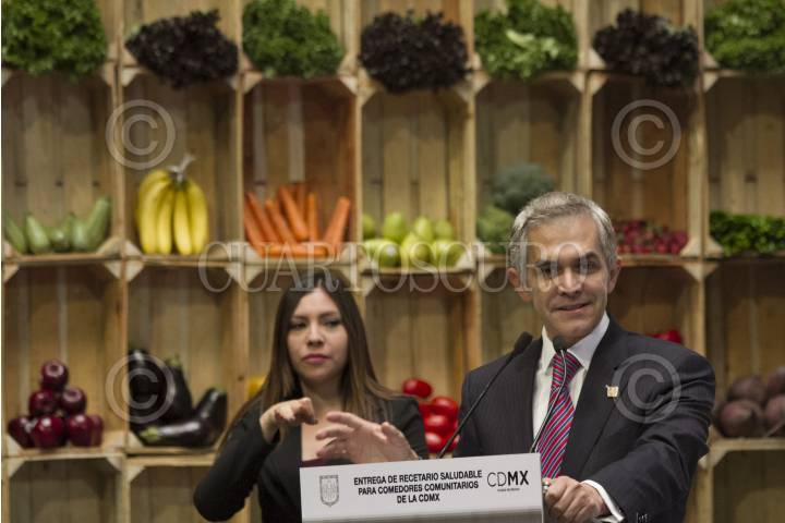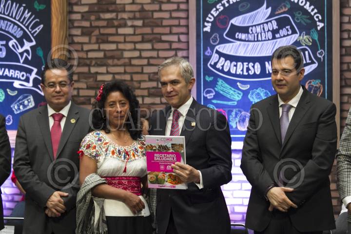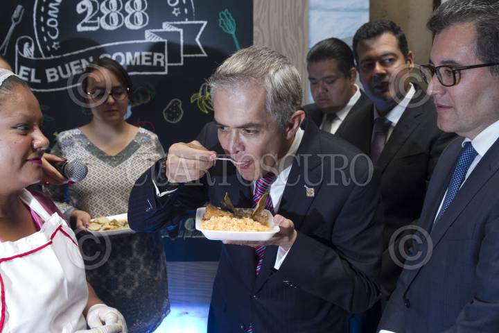 CIUDAD DE MÉXICO, 03MAYO2016.- Miguel Ángel Mancera, Jefe de Gobierno, durante la entrega del recetario saludable para comedores comunitarios de la CDMX, además se realizó una muestra gastronómica en el Antiguo Palacio del Ayuntamiento. FOTO: MOISÉS PABLO /CUARTOSCURO.COM