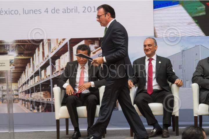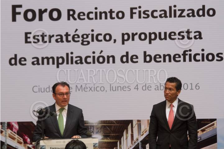 CIUDAD DE MÉXICO, 04ABRIL2016.- Luis Videgaray, secretario de Hacienda y Crédito Público (SHCP), encabezó la inauguración del foro "Recinto Fiscalizado Estratégico, propuesta de ampliación de beneficios", en el patio del Museo Interactivo de Economía. FOTO: MOISÉS PABLO /CUARTOSCURO.COM