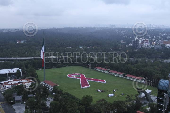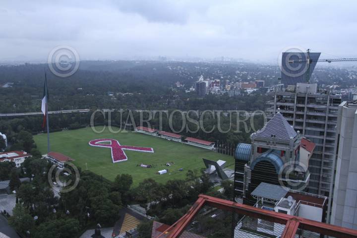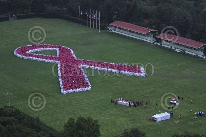 CIUDAD DE MÉXICO, 01OCTUBRE2016.- Más de 12 mil personas se reunieron en el Campo Marte para tratar de romper el Récord Guinness de el el moño rosa más grande del mundo, para simbolizar la lucha contra el cáncer de mama. FOTO: ADOLFO VLADIMIR /CUARTOSCURO.COM