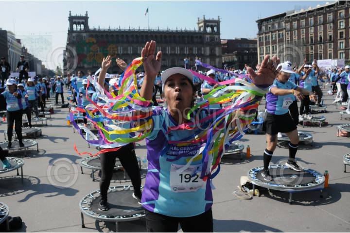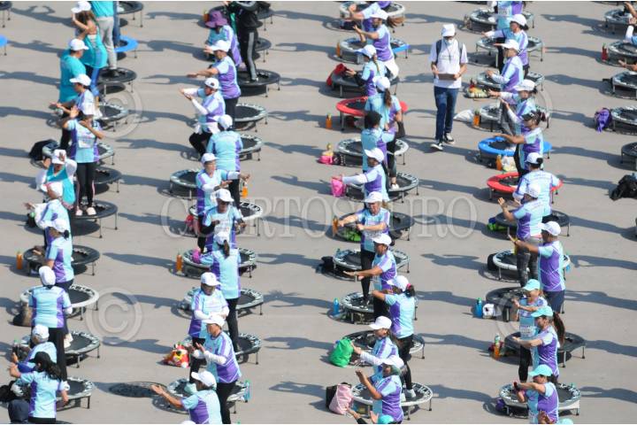 Decenas de personas provenientes de distintas alcaldías rompieron el récord guines por la clase masiva de trampolín fitness.