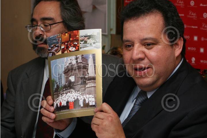 MÉXICO D.F. 27DICIEMBRE2007.-Victor Hugo Rodríguez de editorial Agueda , en conferencia de prensa dode dio a conocer la convocatoria para la Foto con Mayor Numero de Chefs, que se realizara el proximo 26 de Enero en la columna del Angel de la Independencia, y con la cual se pretende ingresar al Records Guines. FOTO: GUILLERMO PEREA/CUARTOSCURO.COM