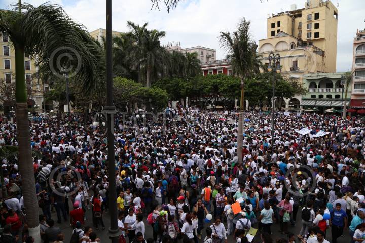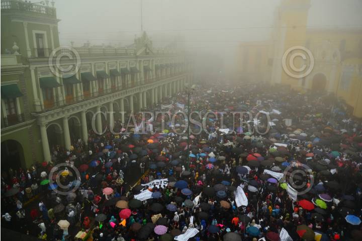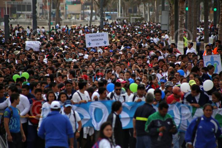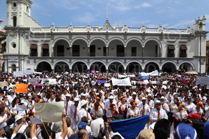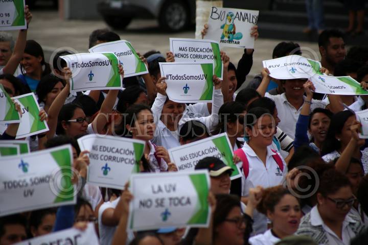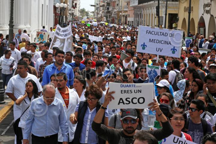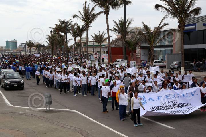 VERACRUZ, VERACRUZ, 10MARZO16.- Miles de estudiantes, catedráticos, administrativos, egresados y padres de familia encabezaron la mega marcha que organizó la máxima casa de estudios de Veracruz para exigir el pago de 2,076 millones de pesos que adeuda Gobierno del Estado, la manifestación pacífica fue a nivel estatal simultáneamente; salieron de la Plaza de la Soberanía concluyendo con un mitin en el Zócalo jarocho. FOTO: ILSE HUESCA /CUARTOSCURO.COM