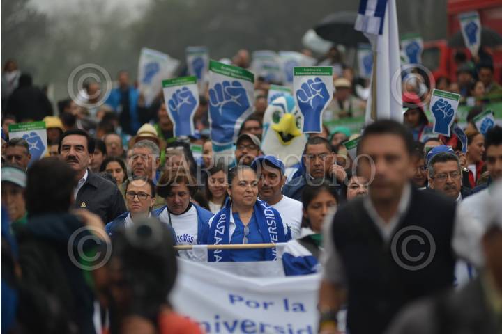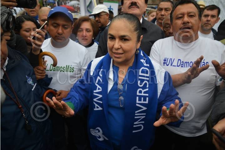 XALAPA, VERACRUZ, 10MARZO2016.- Encabezados por la rectora de la Universidad Veracruzana, Sara Ladrón de Guevara, cientos de universitarios, catedráticos, docentes, egresados y sociedad, salieron a protestar a las calles marchando desde distintas facultades para congregarse en la plaza Sebastián Lerdo, le exigieron al gobierno de Javier Duarte pague el adeudo del presupuesto a la Universidad Veracruzana. FOTO: ALBERTO ROA /CUARTOSCURO.COM