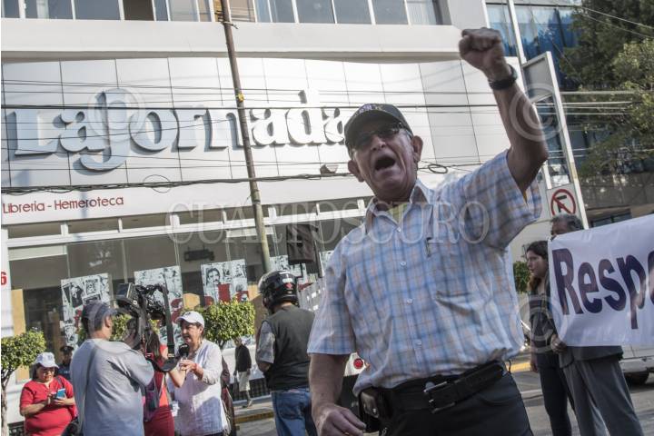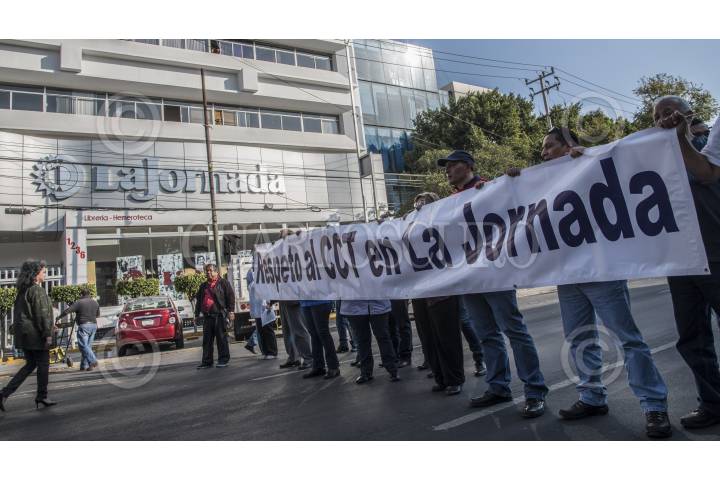 CIUDAD DE MÉXICO. 27ENERO2017.- Miembros del Sindicato Independiente de Trabajadores de La Jornada, junto con otras organizaciones sociales, realizaron un mitin frente a las instalaciones del diario en rechazo al recorte en el ingreso de los empleados. FOTO: TERCERO DÍAZ /CUARTOSCURO.COM
