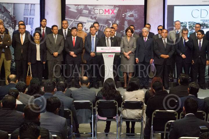 CIUDAD DE MÉXICO, 19FEBRERO2018.- Miguel Angel Mancera, Jefe del Gobierno rindió un informe de avances en de la Reconstrucción de la Ciudad despues del 11 de septiembre, en el patio Central del H. Ayuntamiento Capitalino. FOTO: VICTORIA VALTIERRA /CUARTOSCURO.COM