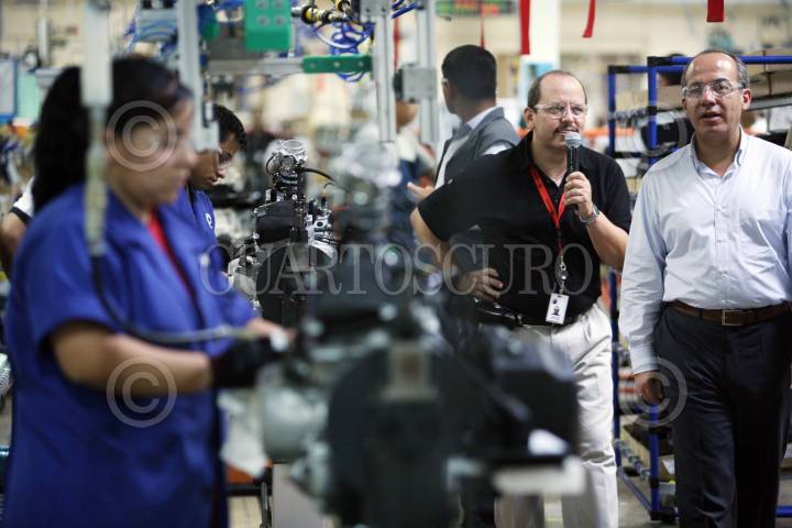 MUNICIPIO DE JUAREZ, CHIHUAHUA., 22JULIO2008. El Presidente de los Estados Unidos Méxicanos, Lic. Felipe Calderón Hinojosa durante la visita a la planta Bombardier Recreational, Productos-BRP. Que tuvo lugar en este Municipio. FOTO ALFREDO GUERRERO/CUARTOSCURO.COM