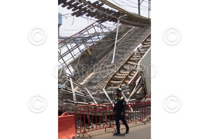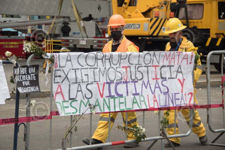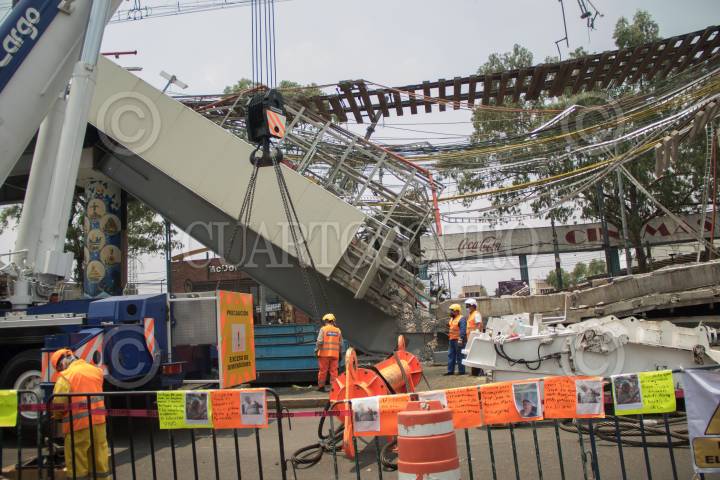 Trabajos del peritaje en la zona del colpso del Metro Olivos de la línea dorada