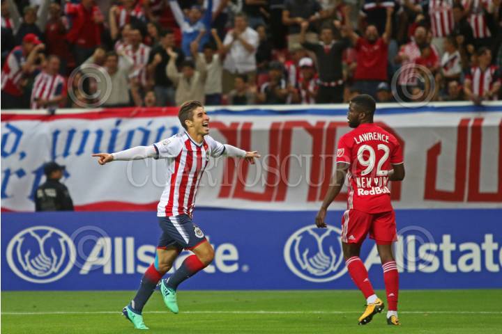 ZAPOPAN, JALISCO, 04ABRIL2018.- Las Chivas de Guadalajara (México) se enfrentan a Red Bulls de New York (USA) en el Estadio Akron y en partido correspondiente a la semifinal de ida de la Liga de Campeones de la Concacaf. En la imagen Isaac Brizuela jugador de Chivas celebra su anotación. El marcador al final del juego fue de 1-0 a favor del equipo de casa. FOTO: FERNANDO CARRANZA GARCIA / CUARTOSCURO.COM