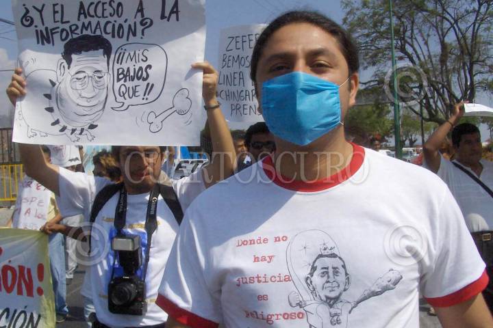 ACAPULCO, GUERRERO, 03MARZO2017.- Periodistas marcharon del asta bandera a las oficinas de la Procuraduria General de la República, para exigir justicia por el asesinato de Cecilio Pineda miembro del Sindicato Nacional de Redactores de la Prensa. FOTO: BERNANDINO HERNÁNDEZ /CUARTOSCURO.COM