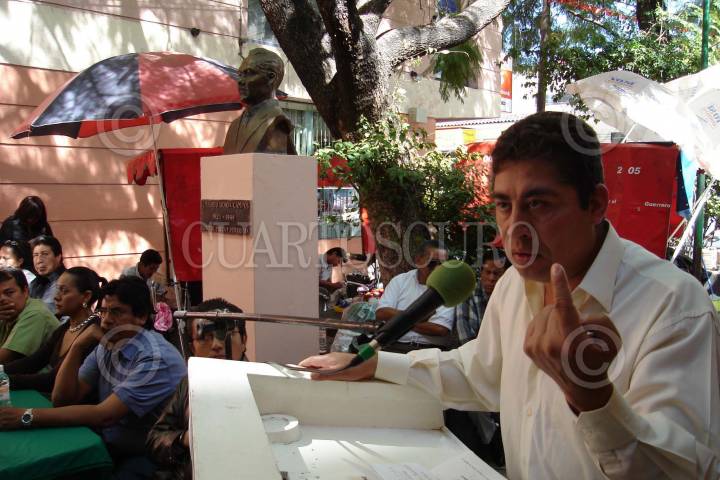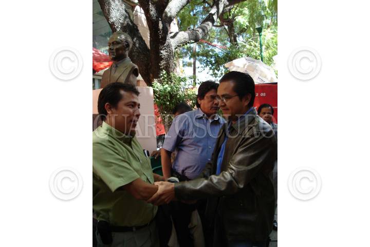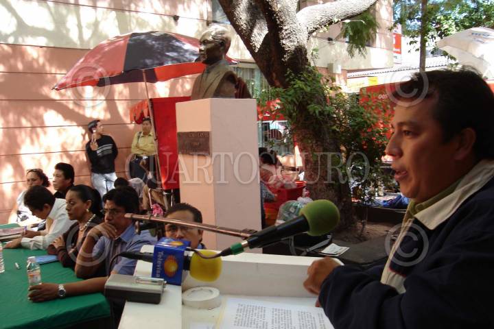 CHILPANCINGO, GUERRERO, 04ENERO2009.-Ceremonia llevada a cabo en la plaza "Libertad de Expresión" por parte de integrantes de la delegación XVII del Sindicato Nacional de Redactores de la Prensa (SNRP) al celebrarse el Dia del Periodista ayer, a la cual acudió el alcalde Hector Astudillo Flores. FOTO: OSCAR ALVARADO/CUARTOSCURO.COM