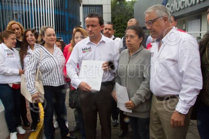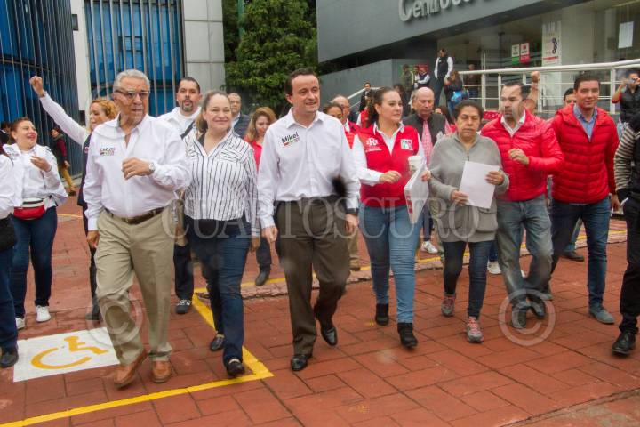 CIUDAD DE MÉXICO, 19JUNIO2018.-Mikel Arriola abanderado priísta a la jefatura del gobierno de la Ciudad, acudió a soluciones Ciudadanas, acompañado de candidstos de su partido, al termino aseguro que el es el único que puede ganarle a la candidata de Morena, Claudia Sheinbaum. FOTO: VICTORIA VALTIERRA /CUARTOSCURO.COM