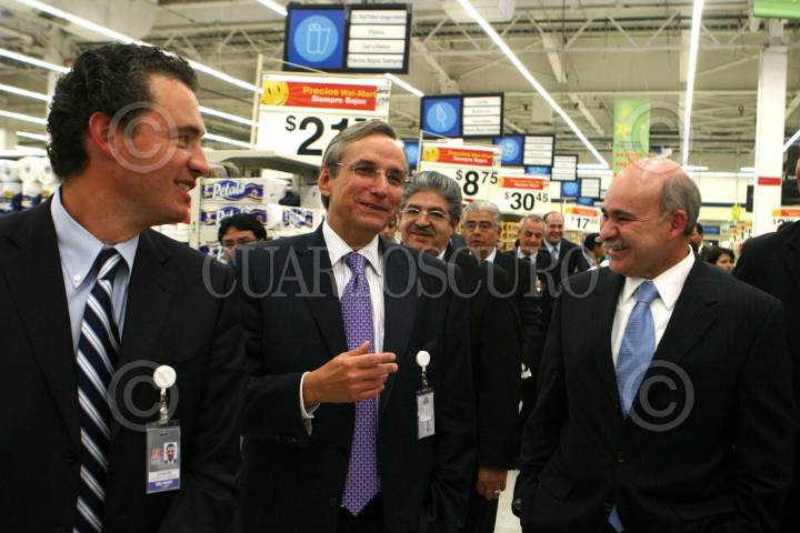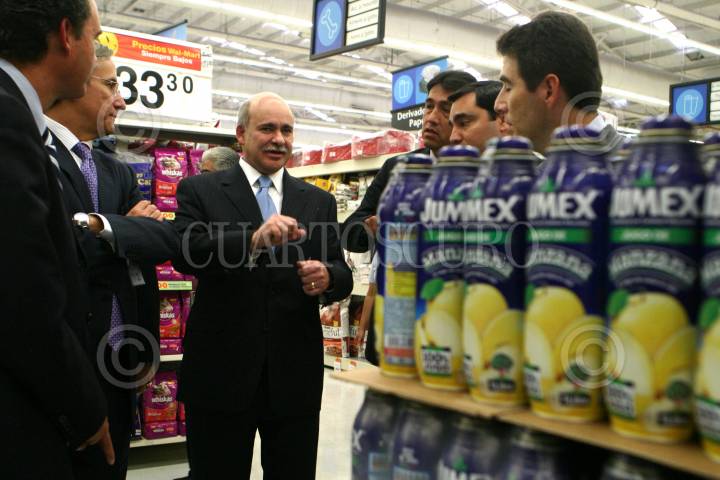 MEXICO, D.F., 10ENERO2008.- El Secretario de Economia Eduardo Sojo acompañado de Eduardo Solorzano presidente ejecutivo de Wal-Mart México, dieron el arranque de la campaña " Reduce precios a 1000 productos de primera necesidad" de dicha tienda comercial. FOTO: SAÚL LÓPEZ/CUARTOSCURO.COM