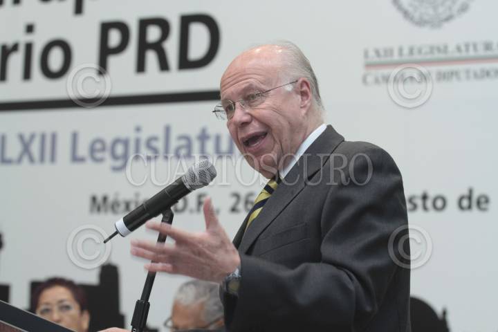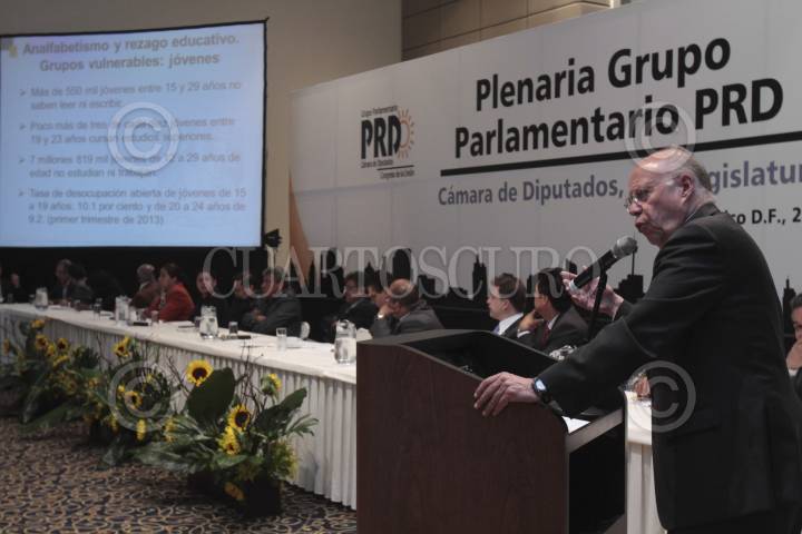 MÉXICO, D.F. 27AGOSTO2013.-El rector de la Universidad Nacional Autónoma de México (UNAM), José Narro Robles, durante su participación en la plenaria del grupo parlamentario del PRD en la cámara baja, confió que el conflicto iniciado por la reforma, que obliga a una evaluación de los profesores, “llegue a feliz término”, porque resaltó que actualmente miles de niños están sin clases porque no han podido iniciar el ciclo escolar. Consideró que la movilización de profesores hacia la Ciudad de México no se reduce a cuántos de estos permanecen en el plantón, “sino de que los niños deben de recibir su educación en estados muy necesitados y esto no debe seguir así”. FOTO: JUAN PABLO ZAMORA /CUARTOSCURO.COM