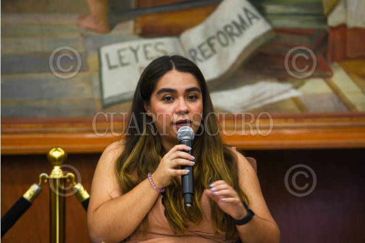 TOLUCA, ESTADO DE MÉXICO, 29ABRIL2025.- Diana Murrieta, presidenta y fundadora de “Nosotros para Ellas” participó en el Primer Foro “Acecho” en la Legislatura local, con el objetivo de visibilizar esta forma de violencia, al menos 82 por ciento de víctimas de acecho en la entidad mexiquense son mujeres, y se informó que avanza la iniciativa de reforma para tipificar el acecho como un delito, sancionándolo con una pena de hasta 8 años de prisión. FOTO: CRISANTA ESPINOSA AGUILAR /CUARTOSCURO.COM