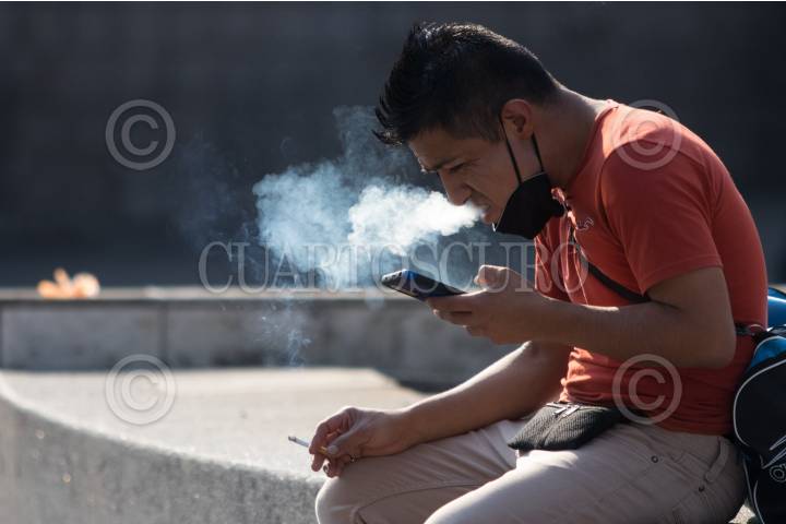 Un hombre fuma cigarro, el cual a partir del 1 de enero del 2022, la cuota aplicable pasará de 0.5108 pesos a 0.5484 pesos