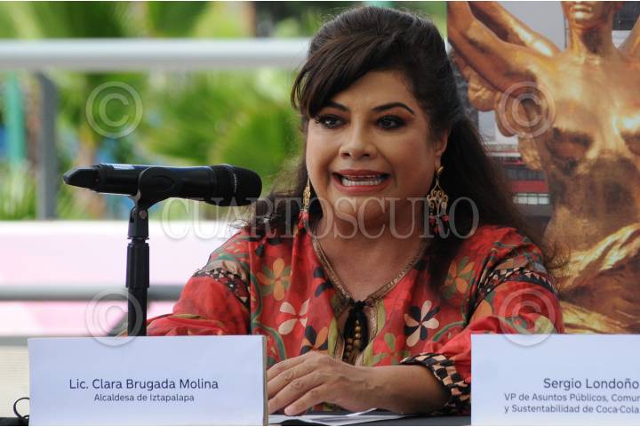 Clara Brugada, alcaldesa de Iztapalapa, durante su participación en la conferencia.