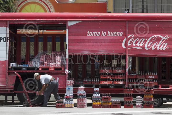 MÉXICO, D.F., 14AGOSTO2012.- Trabajador de una refresquera descarga un camión en la colonia San Rafael. FOTO: MOISÉS PABLO /CUARTOSCURO.COM