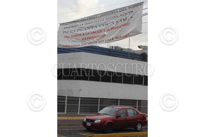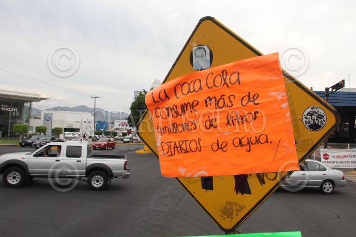 MORELIA, MICHOACAN, 24 DE MAYO DE 2013.- Habitantes de la colonia El Toreo, dieron a conocer que continuaran con acciones para evitar que la empresa trasnacional Coca-Cola Company extraiga agua de los mantos acuíferos de la colonia El Toreo ubicada a las orillas de Morelia. Los inconformes han colocados mantas e iniciado una campaña para que la refresquera reubique sus instalaciones en algún otro lugar del estado. FOTO: SAÚL LÓPEZ /CUARTOSCURO.COM