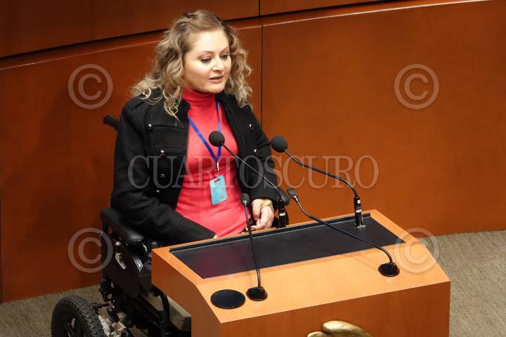 La senadora Claudia Edith Anaya (PRI) durante su participación en la sesión del senado donde se aprobó la modificación de la ley de Seguros y Pólizas para evitar la discriminación a personas con discapacidad