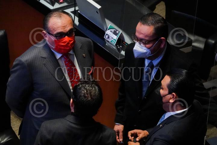 Carlos Ramírez Marín (PRI); Germán Martínez Cázares (PAN); Clemente Castañeda (MC) y Juan Zepeda (independiente) durante la sesión del Senado de la Republica
