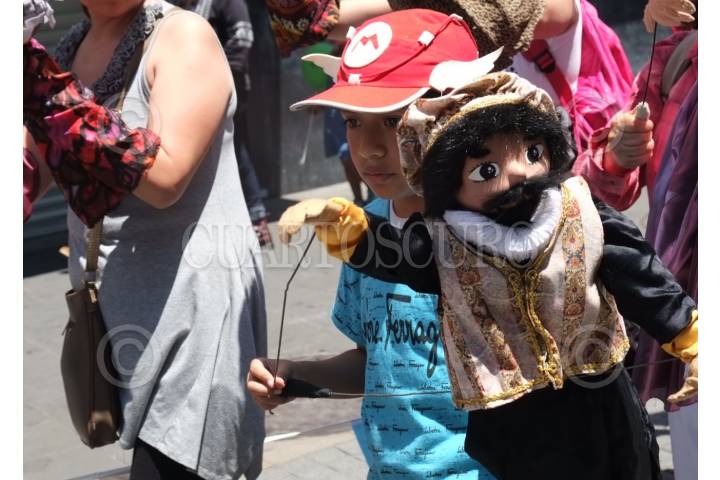 CIUDAD DE MÉXICO, 25MARZO2018-. Niños y adultos se reunieron en el andador de la calle Regina para celebrar el Día del Títere que fue el pasado 21 de marzo. Con esta iniciativa se promueve, valora y difunde el arte de hacer teatro con muñecos de papel, madera o tela; se reconoce también el albor del titiritero que da vida y personalidad al muñeco para contar historias, denunciar situaciones e imaginar mundos. FOTO: ANDREA MURCIA /CUARTOSCURO.COM