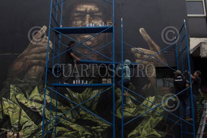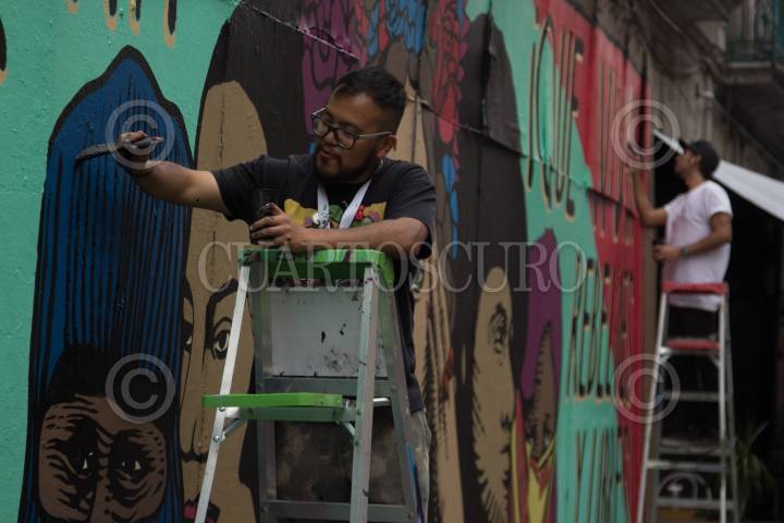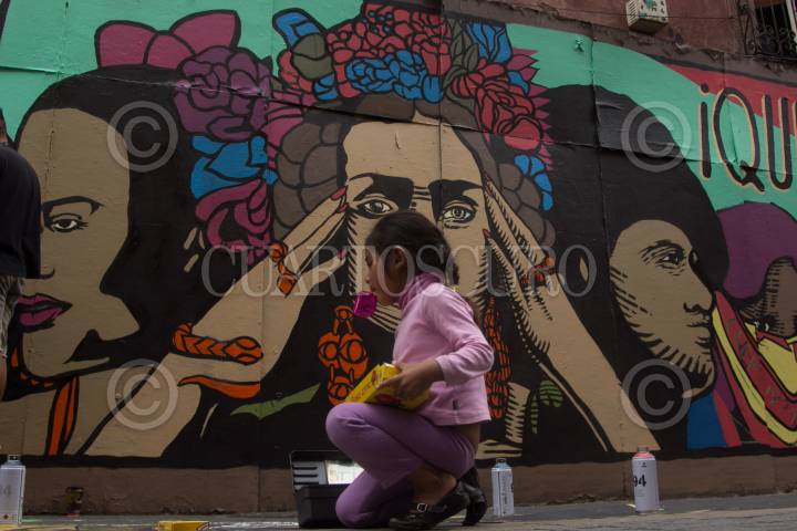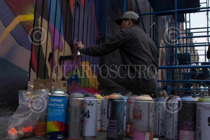 CIUDAD DE MÉXICO, 07OCTUBRE2018.- Artistas del grafito continúan trabajando los muros de la calle de Regina en el centro histórico, esto con motivo del Festival Internacional de Graffiti. El festival conocido también como Meeting of Styles, se desarrollará en dos sedes: la primera será Ciudad de México, del 5 al 7 de octubre, y la segunda será el suroriental estado de Quintana Roo, del 10 al 26 del mismo mes. FOTOS: GALO CAÑAS /CUARTOSCURO.COM
