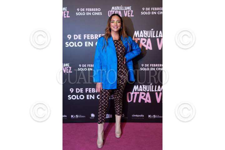 La actriz Regina Blandón, protagonista de la película Maquíllame otra vez, durante la Alfombra Roja en Cinépolis Miyana