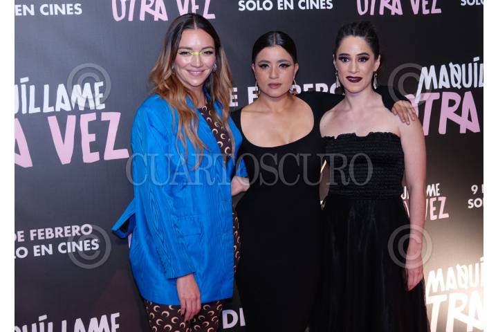 La actrices Regina Blandón, Paulina Gaitán y Tamara Vallarta, protagonistas de la película Maquíllame otra vez, durante la Alfombra Roja en Cinépolis Miyana