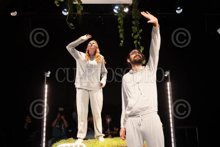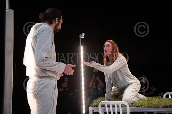 Regina Blandon y Xavier García durante su presentación en la puesta en escena "Pulmones", que se presenta en el Foro Lucerna.