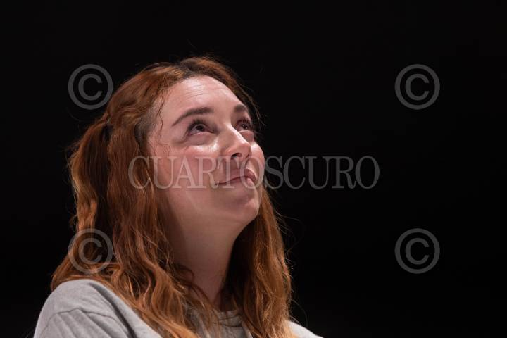 Regina Blandón durante su presentación en la puesta en escena "Pulmones", que se presenta en el Foro Lucerna.