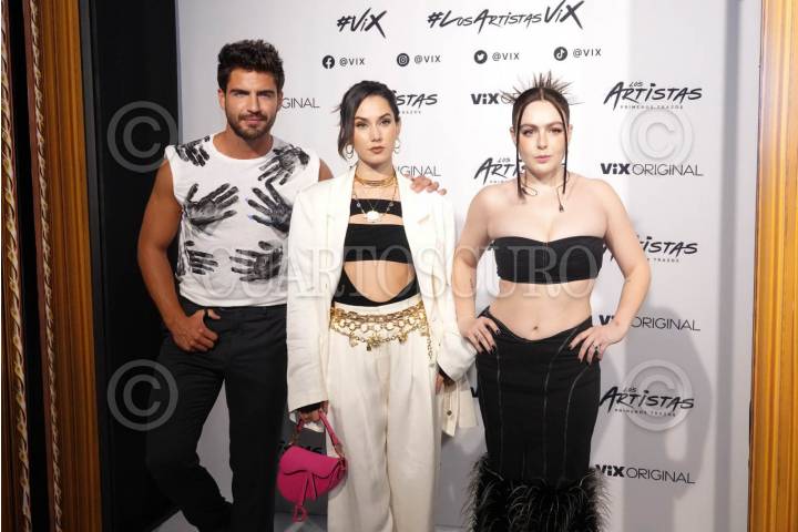 Los actores Maxi Iglesias, Ximena Romo y Regina Pavón durante la Alfombra Roja de la serie “Los Artistas: Primeros Trazos” en Fundación Sebastián