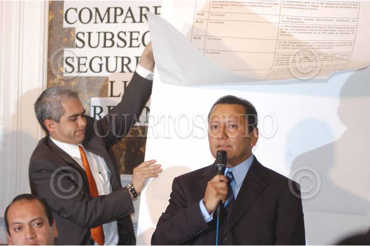 MEXICO, D.F., 06JUNIO2006.- Gabriel Regino, Subsecretario de Seguridad Pública, ofreció una conferencia de prensa sobre el atentado que sufrió la esposa de Carlos Ahumada, Cecilia Gurza, en la sede de la policía capitalina. FOTO: Guillermo Perea/CUARTOSCURO.COM