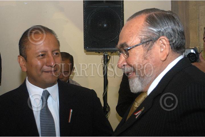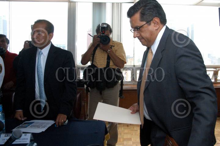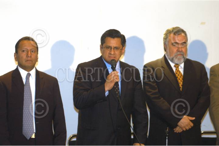 MEXICO D.F. 20SEPTIEMBRE2006.- Gabriel Regino integrante del equipo de transición y el procurador Bernardo Batiz, durante la reunión donde se dio a conocer la instalación de la comisión transición de gobierno. FOTO. GUILLERMO PEREA/CUARTOSCURO.COM