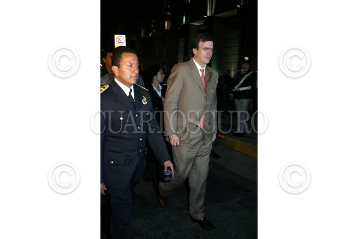 México, D.F., 13JULIO2004.- Gabriel Regino, subprocurador de la SSP y Marcelo Ebrard, secretario de Seguridad Pública, dan un recorrido por las calles del centro histórico para checar el funcionamiento del marcooperativo de seguridad que comenzó esta mañana. FOTO: Moisés Pablo/CUARTOSCURO.COM