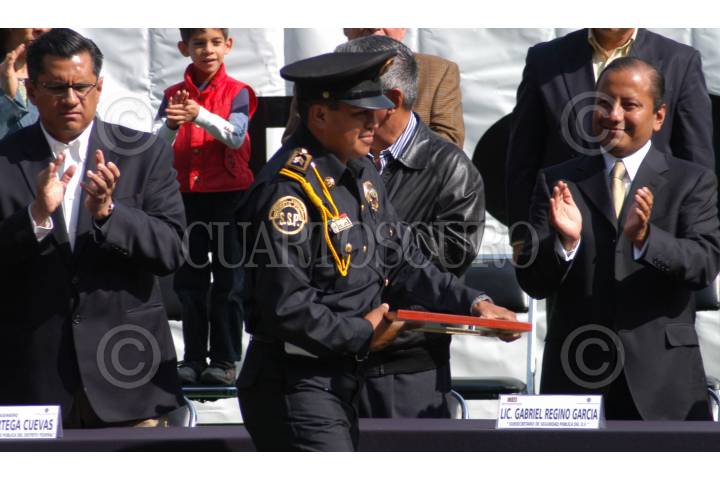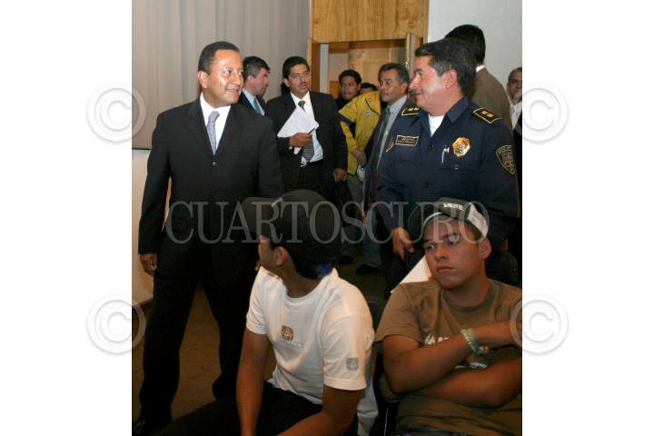 MÈXICO, D.F. 18DICIEMBRE2005.- Alejandro Garniño Tejera recibió el premio como policia del año durante el desfile del Día del Policía. En la imagen Joel Ortega Secreatrio de Seguridad Pública del D.F. y Gabriel Regino García, Subsecretario de seguridad pública. FOTO:Miriam Sánchez/CUARTOSCURO.COM