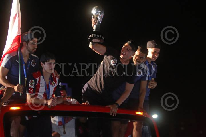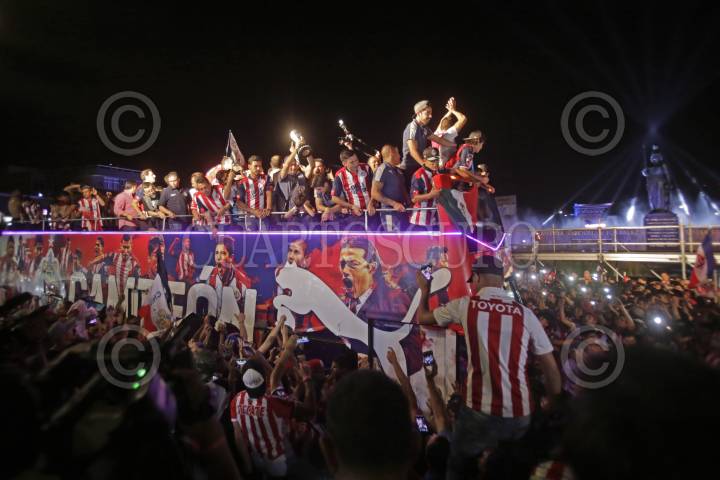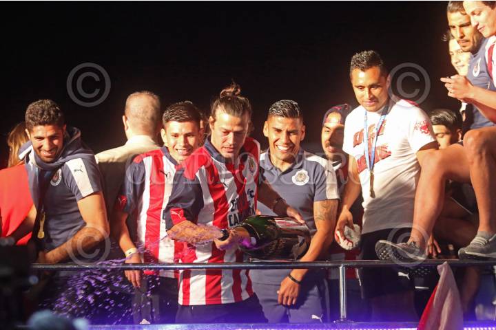 GUADALAJARA, JALISCO. 29MAYO2017.- El equipo de Chivas durante el festejo en la Glorieta de la Minerva, por el campeonato de la Liga MX obtenido la tarde de ayer en el Estadio Chivas, al vencer al equipo Regio de los Tigres de la UANL. FOTO: FERNANDO CARRANZA GARCIA / CUARTOSCURO.COM
