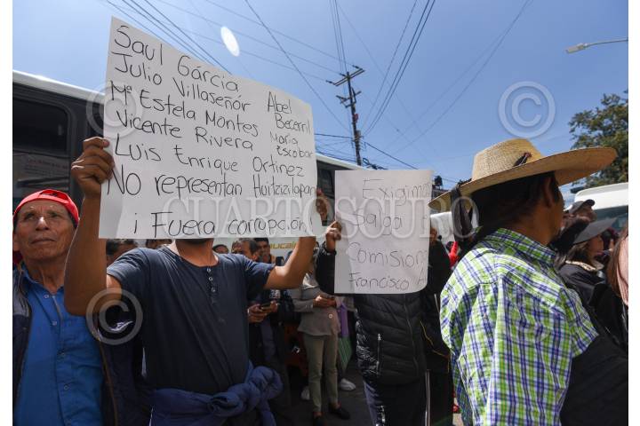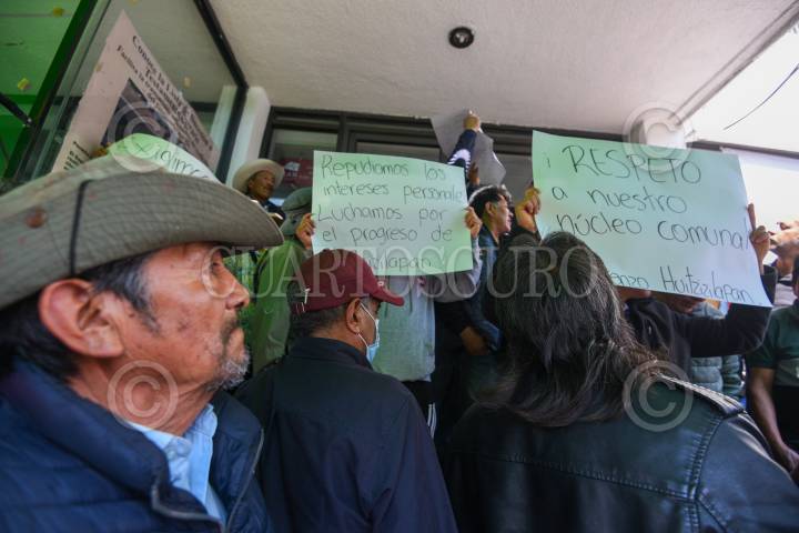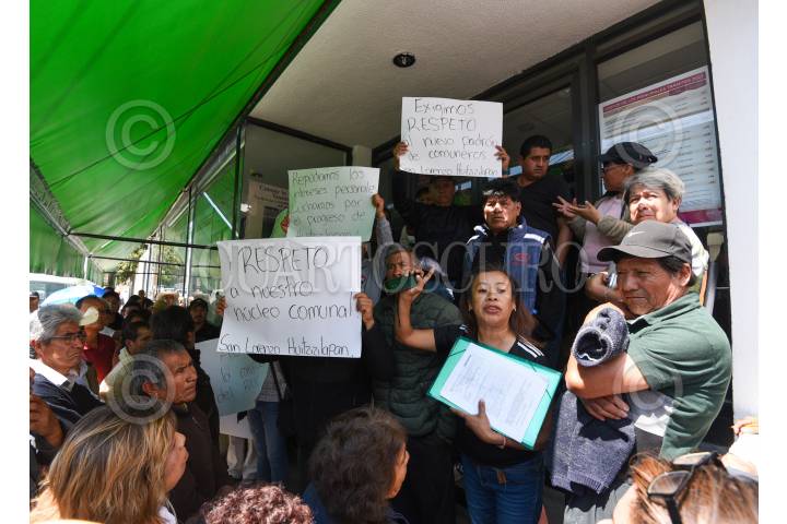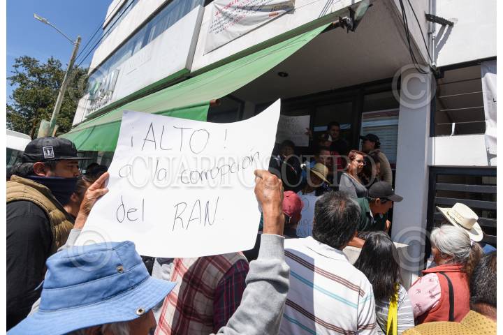 Vecinos de San Lorenzo Huitzizilapan en el municipio de Lerma se manifestaron en las oficinas del Registro Agrario Nacional denunciando actos de corrupción.