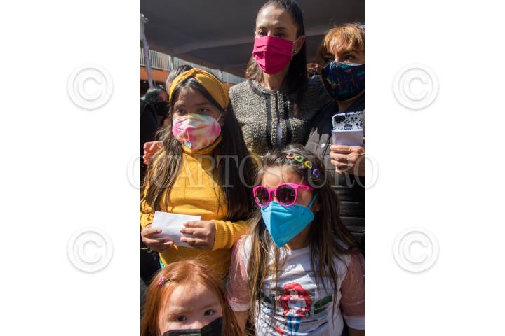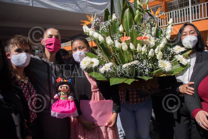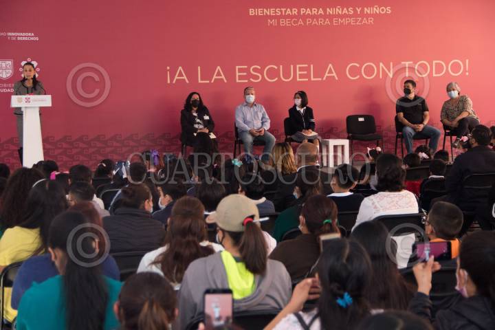 Claudia Sheinbaum, Jefa de Gobierno, entrego a alumnos de la escuela primaria "Fuerzas Armadas de México" la tarjeta del programa "Mi Beca Para Empezar".