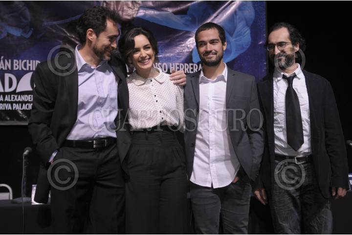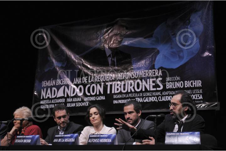 MÉXICO, D.F., 11ENERO2012.- Los actores, Demián Bichir, Ana de la Reguera, Alfonso Herrera y el director, Bruno Bichir, presentaron la mañana de hoy en conferencia de prensa donde se anunció el inició de los ensayos de la obra de Teatro "Nadando con Tiburones" basada en la película de George Huang y adaptada por Michael Lesslies, se presentara en el Teatro de los Insurgentes sin fecha precisa para su estreno. FOTO: FRANCISCO RODRÍGUEZ/CUARTOSCURO.COM