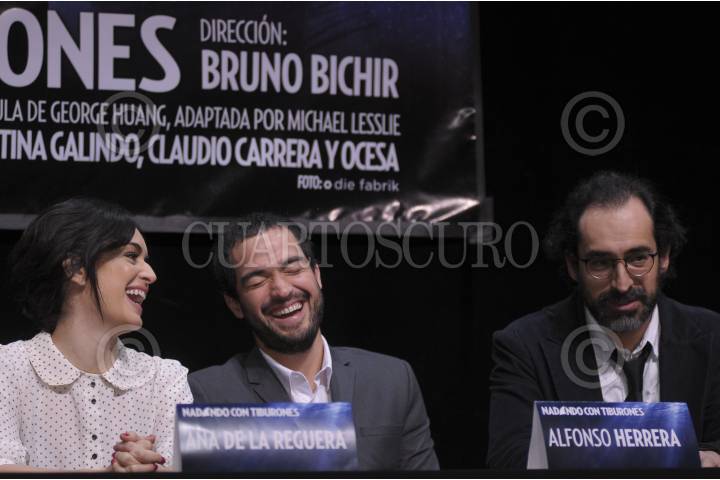 MÉXICO, D.F., 11ENERO2012.- Los actores, Ana de la Reguera y Alfonso Herrera, y el director, Bruno Bichir, presentaron la mañana de hoy en conferencia de prensa el inició de los ensayos de la obra de Teatro "Nadando con Tiburones" basada en la película de George Huang y adaptada por Michael Lesslies, se presentara en el Teatro de los Insurgentes sin fecha precisa para su estreno. FOTO: FRANCISCO RODRÍGUEZ/CUARTOSCURO.COM