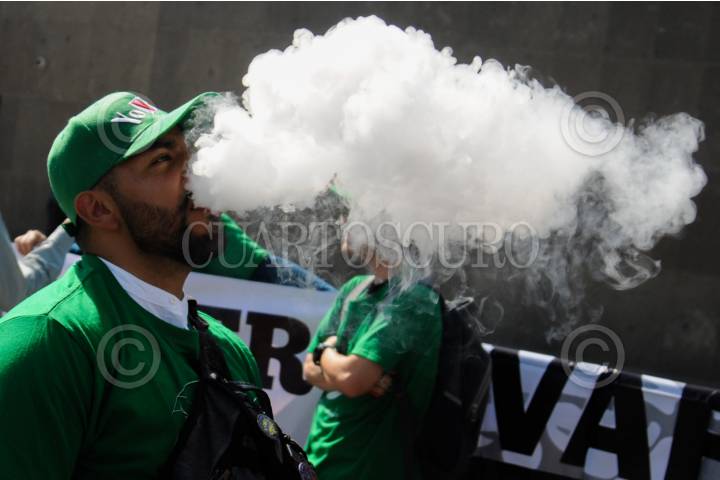 CIUDAD DE MÉXICO, 12MARZO2024.- Una persona utiliza un vapeador durante una protesta que exige no sean prohibidos estos objetos. FOTO: DANIEL AUGUSTO /CUARTOSCURO.COM